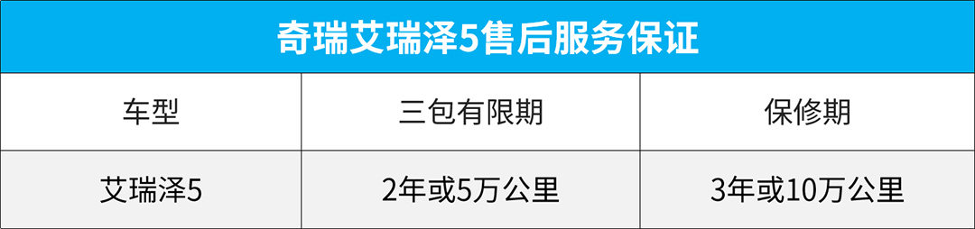 当然,作为1款家用轿车,买了以后后期养车是否够便宜也是左右消费者购车的重要因素。为此,艾瑞泽5在后期维修保养层面给足了诚意,提供2年或5万公里的三包有限期和3年或10万公里的保修期,并且为新车提供1次包含更换机油、机滤、工时费在内的免费保养服务。