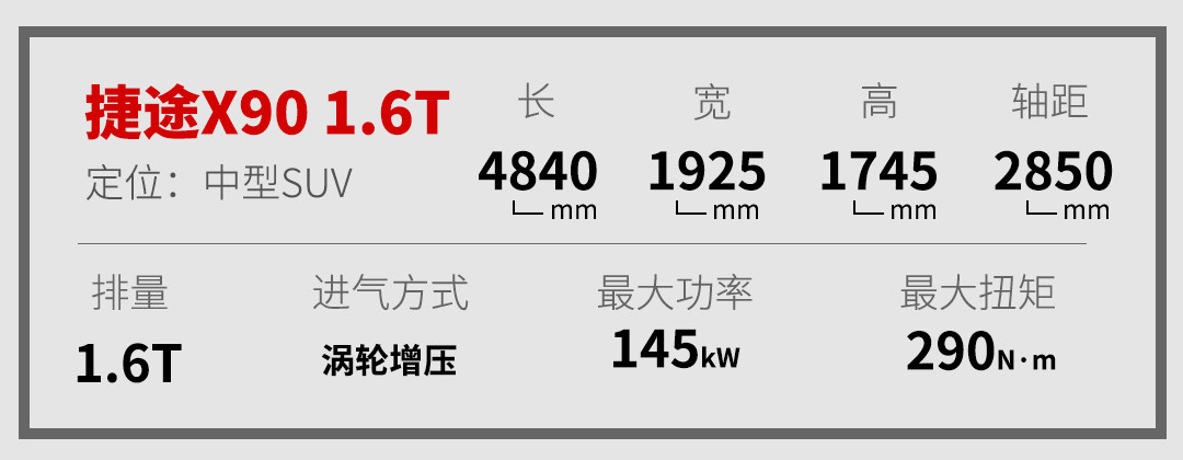 捷途X90 1.6TGDI的车身尺寸对比1.5T车型基本相同,2850mm的轴距让它可以提供5座、6座和7座车型。动力方面这次搭载了代号为F14J16的奇瑞ACTECO Ⅲ代系列发动机,匹配7速湿式双离合变速器。