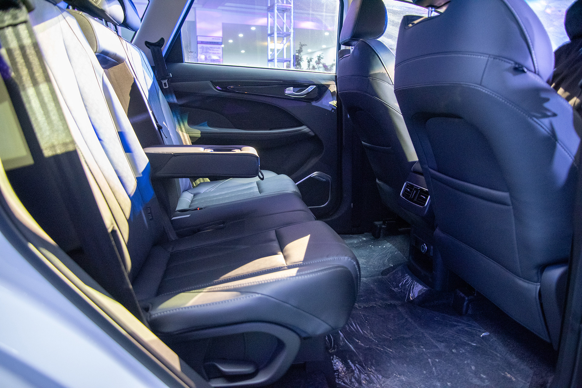当第二排退至最后时,腿部空间足够宽敞,有一拳4指左右的距离(测试者身高170cm)。