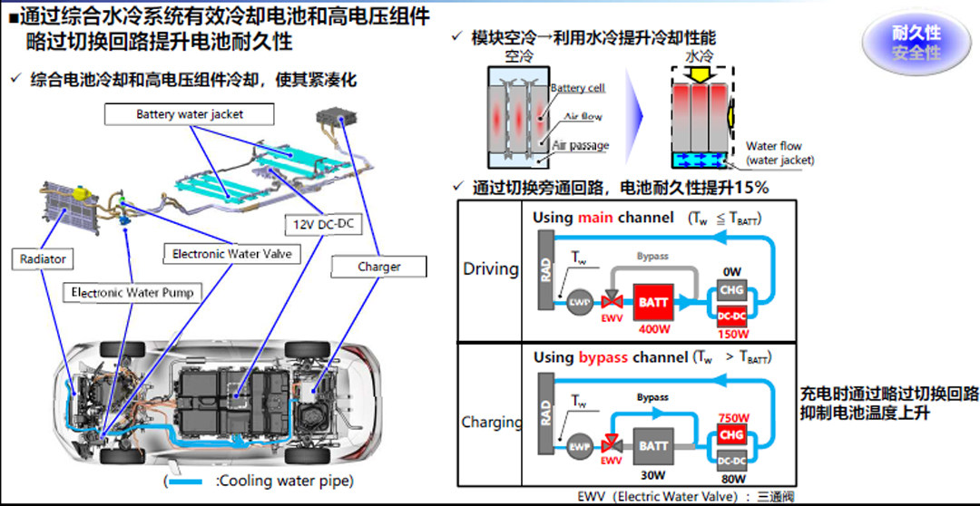 PCU方面,通过提升VCU的功率,使得在EV模式下最高速度可以达到160km/h。同时,该系统使用17kWh的大容量锂离子电池,全新的磁耦合电感以及将VCU电路从原来的一相变成两相,让车辆的纯电续航能够比普通i-MMD车型长4倍,功率提高1.4倍。