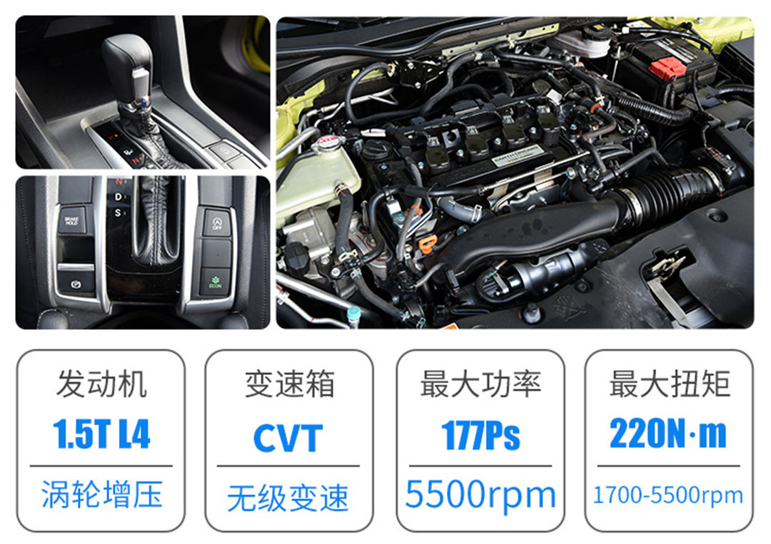 两款车的入门版本我们就不做讨论了,本次我们还是聚焦两款车的1.5T车型。思域的1.5T是踏踏实实的四缸机,177Ps最大马力与220N·m最大扭矩堪称同级领先,在动力数据上无需质疑。
