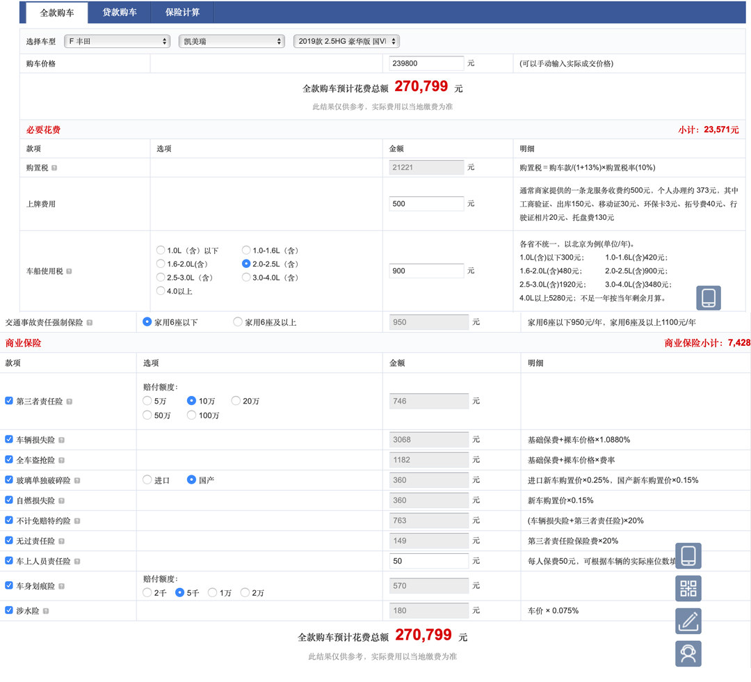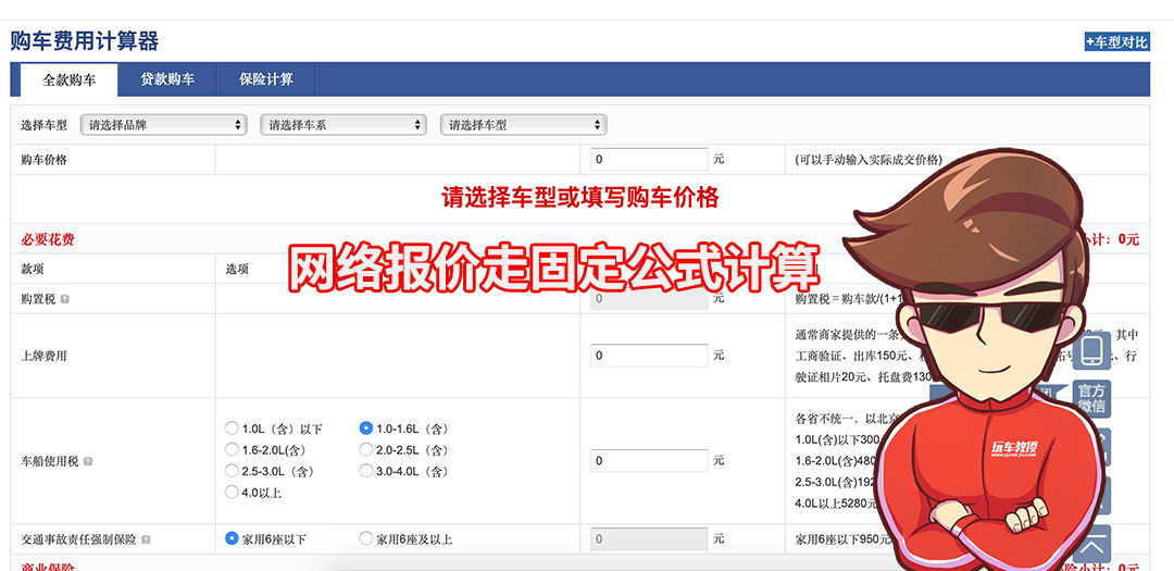 目前,不少汽车网站都提供有“购车计算器”的功能,而它们也都真的是在计算新车落地价!但有别于实体4S店的计算方式,网络“购车计算器”往往是套用固定的计算公式,机械化,没有那么灵活。