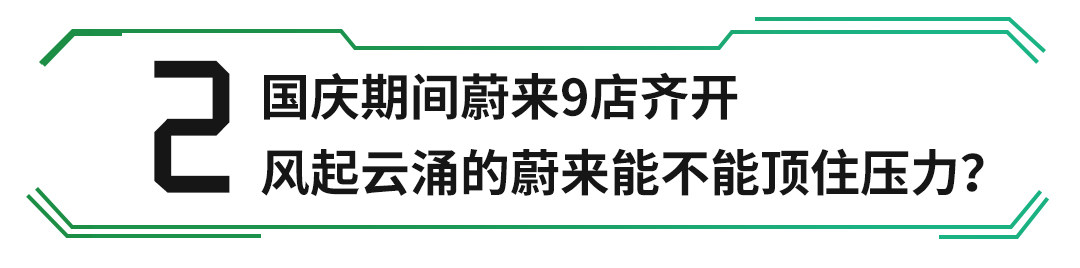 可是这边厢国庆期间蔚来连开9家门店,其中包括一家NIO House以及8家NIO Space,届时,蔚来汽车门店数量将达到45家,覆盖全国33个城市。