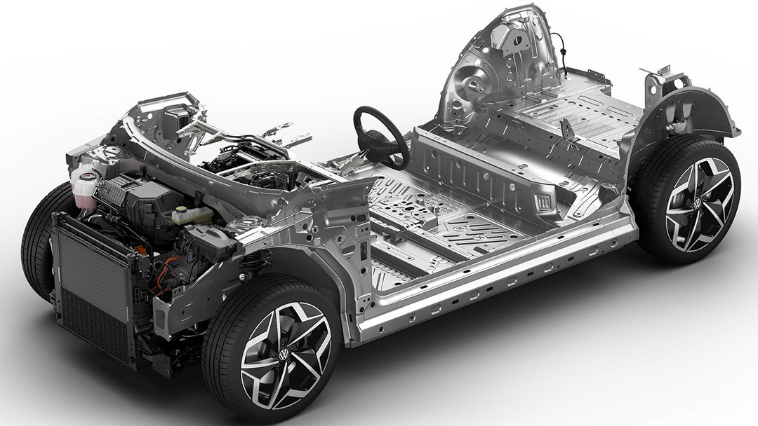首先是全新、从0打造的MEB电动专属平台,它有着MQB平台一般的灵活性,可以打造不同级别的车型。但它也因为全新开发、电动专属的原因,有着不少电动车的优势,例如是四角四轮的稳定结构,短小的前悬后悬使得四轮尽可能贴近车身四角,这也使得它在与高尔夫尺寸相当情况下,有着更长的2735mm轴距。