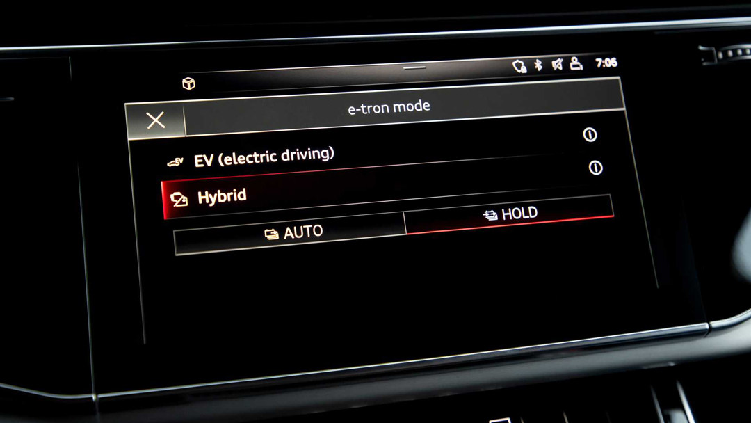 内饰方面毫无意外是奥迪最新的虚拟座舱风格,三个屏幕分别显示车辆的行驶信息、娱乐信息以及功能信息,三个屏幕分工明确,操作简单,只不过在使用过程中难免留下指纹,如果您想要购买这一套内饰的车型,建议您在车中常备一条擦镜布。PHEV车型跟燃油版最大的区别在于PHEV车型针对插混系统,在中控屏上可以选择油电混合以及纯电两种驱动模式,并且在仪表的UI上针对PHEV做专门的调整。