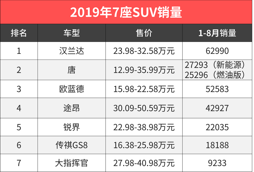 在我们印象中,汉兰达要么加价,要么就是无休止地等车,如此火爆的车型一个月销量是多少呢?月均销量8000不到,排在SUV销量榜的20开外。