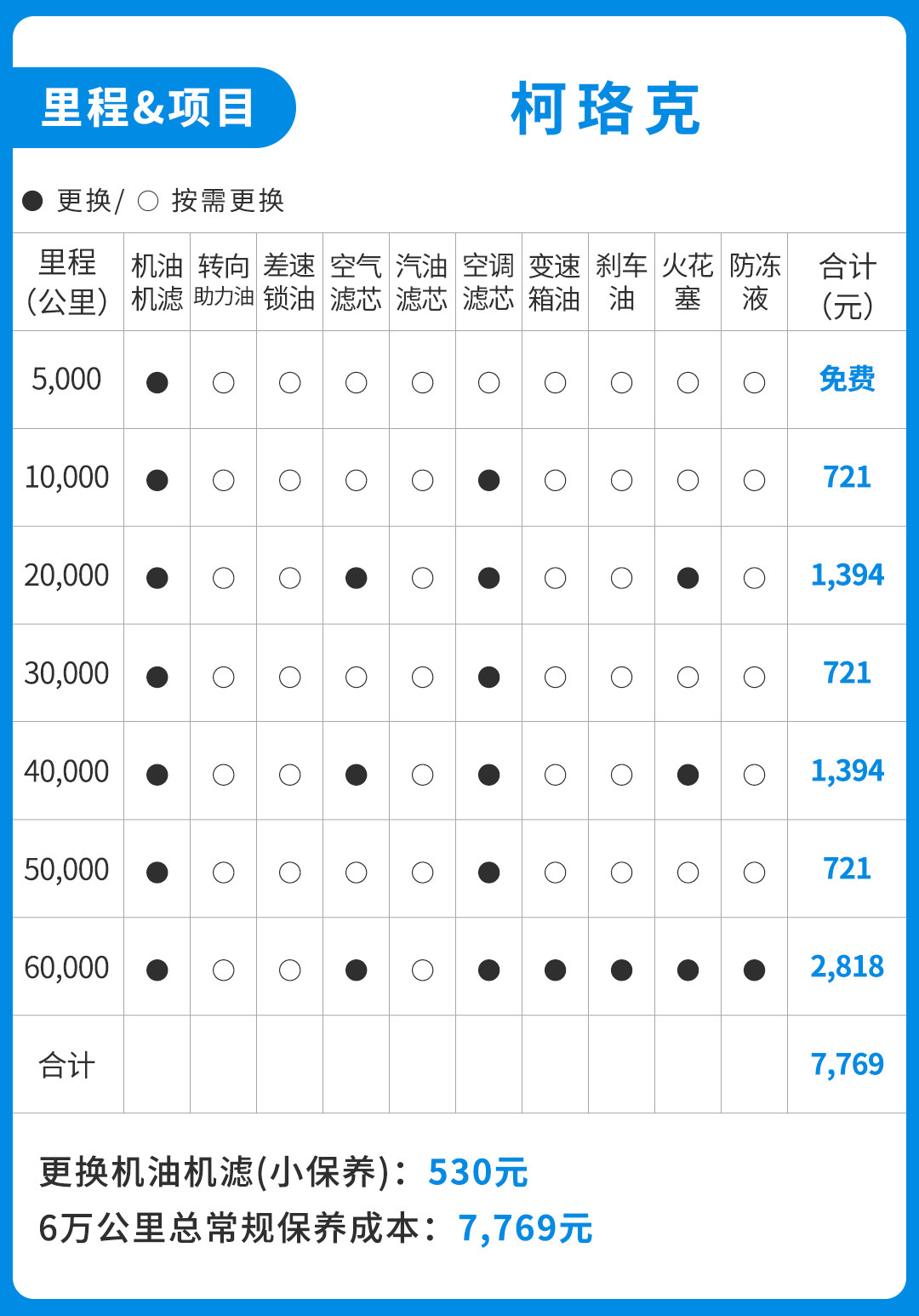 总体而言,柯珞克真正做到“没什么特别,但是你又挑不出毛病”,一切都以实用为主。不过这里需要注意一点,部分4S店会建议将保养间隔缩短到5,000公里保养一次。但如果用车环境并不是非常恶劣,完全没必要这样做,消费者在购车时需要跟4S店商量好,一方面以免产生额外的费用,另一方面是车辆过度保养并不是什么好事。