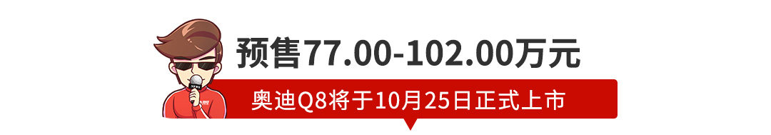 日前获悉,奥迪旗下旗舰级SUV奥迪Q8将于10月25日正式上市。此前新车已公布预售价格,其预售价为77.00-102.00万元,同时新车前期将推出288台至尊限量版车型,其指导价为109.76万元。对于奥迪Q8,相信大家对它的外观以及内饰都十分熟悉,在此也不再赘述,而此次引入的车型搭载的是3.0L涡轮增压汽油发动机,匹配8速自动变速箱,并采用了48V轻混技术。该车在2018年6月在国内完成首发,同年已于海外市场上市销售,虽然Q8在国内完成首发,但上市似乎拖得有点久了。