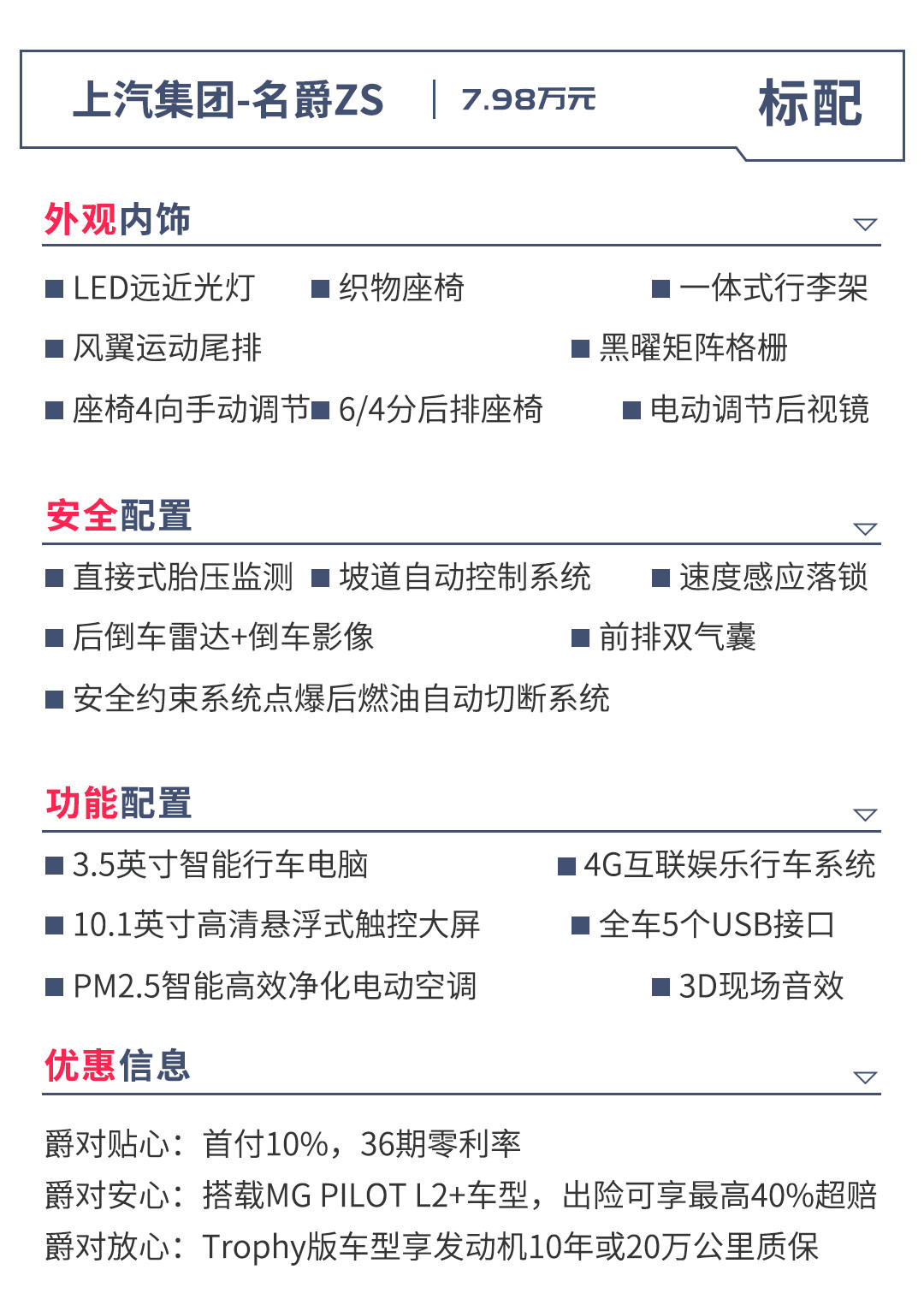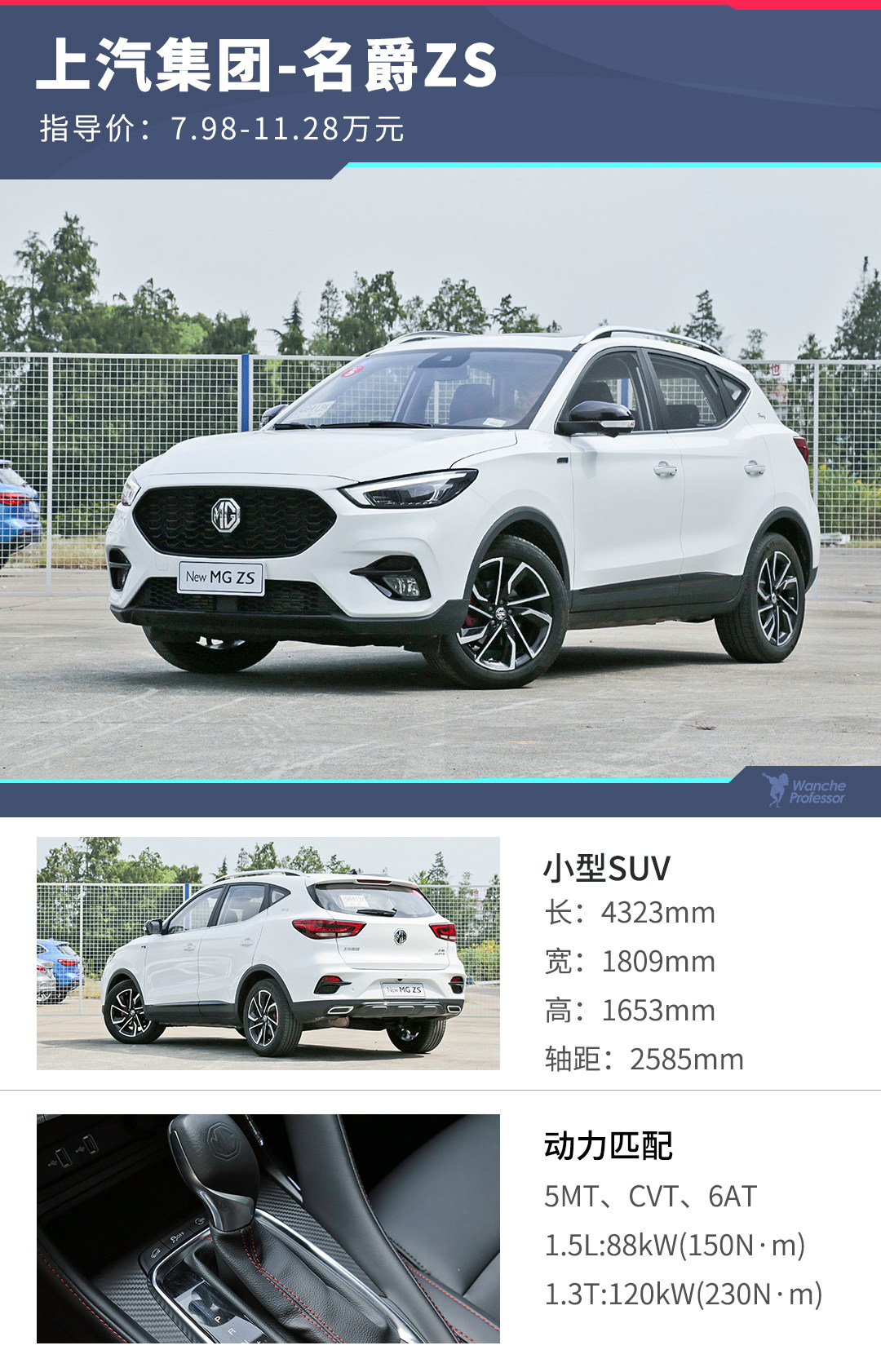 10月17日,上汽名爵旗下的小型SUV——全新名爵ZS正式上市,本次新车在各方面都有比较大的提升,售价区间为7.98-11.28万元,共有7款车型可选。其中配备1.5L发动机的车型5款,配备1.3T发动机的车型2款。那么如何选择适合自己的车型呢?本篇文章教授将会为你分析性价比最高的车型。
