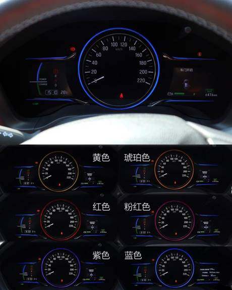 要提及车辆内部带来的科技感,仪表盘带有的氛围灯控制算是最为突出的一个了。如图所示,各种颜色的氛围灯代表的驾驶模式也不大一样,并且自己也能从行车电脑调取切换,比较受年轻人喜欢。