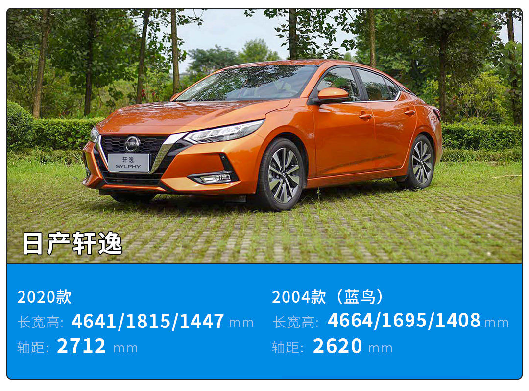 对比两款车型会发现,当年蓝鸟虽然为B级车,但随着十多年来的进化演变,如今身为A级车的轩逸在尺寸上已经要强于蓝鸟了。除了车长不如蓝鸟外,宽度、高度、轴距都是全面领先。