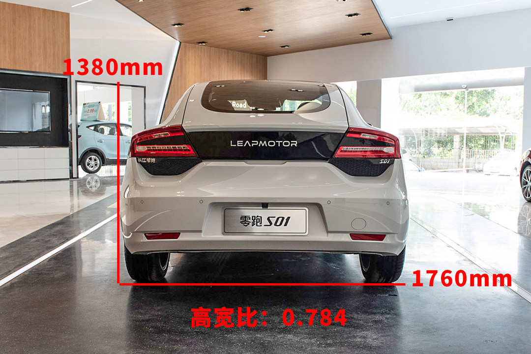 而零跑S01的高宽比高达078,都接近0.8了,其实正常的跑车高宽比是应该在0.7左右的,顶级跑车会在0.6—0.7之间徘徊,这就是为什么零跑S01看起来没有跑车那股视觉冲击力的原因。