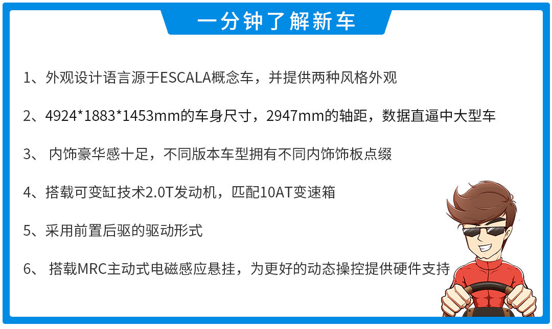 延续品牌双外观策略,CT5提供风尚版和运动版车型,行政、运动两相宜。