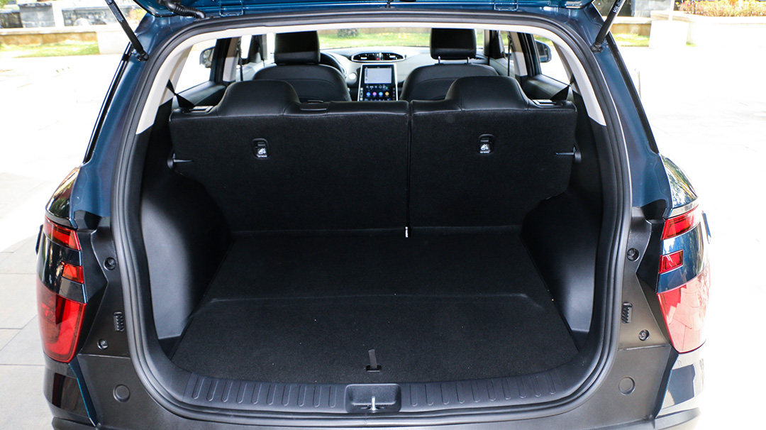 新一代ix25的悬架表现一般,其实不难理解,毕竟为了追求空间,后悬架采用的是扭力梁结构,从而保证了后排以及后备厢都有较大的空间。我这个中等身材的人,头部、腿部都有一拳+的距离,在小型SUV算是名列前茅了。后备厢的官方数据是444L,实测来看也不小,年轻人外出旅游那些箱子等大大小小的物件装下问题不大。