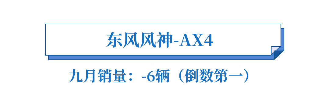 近些年来东风风神被市场逐步边缘化,不仅是销量,乃是囊括品牌、产品、质量、渠道等全方位的边缘化,日子自然是过得异常艰苦。其中AX4在九月份更是交出了“-6”辆的惊人成绩单。这就意味着AX4在九月份实际卖出去的车还不够经销商退还的多。