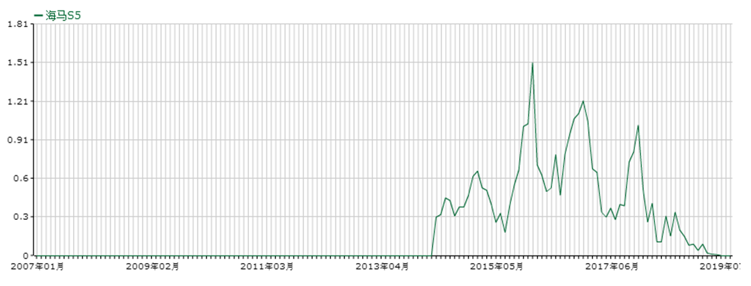 而作为海马在SUV领域的支柱、曾占据海马汽车整体销量79.5%、最高光时期单月销量突破1.5万辆的海马S5,如今只能在市场底部艰难挣扎求存。可以说海马S5由辉煌到落寞正好就是海马汽车的缩影。