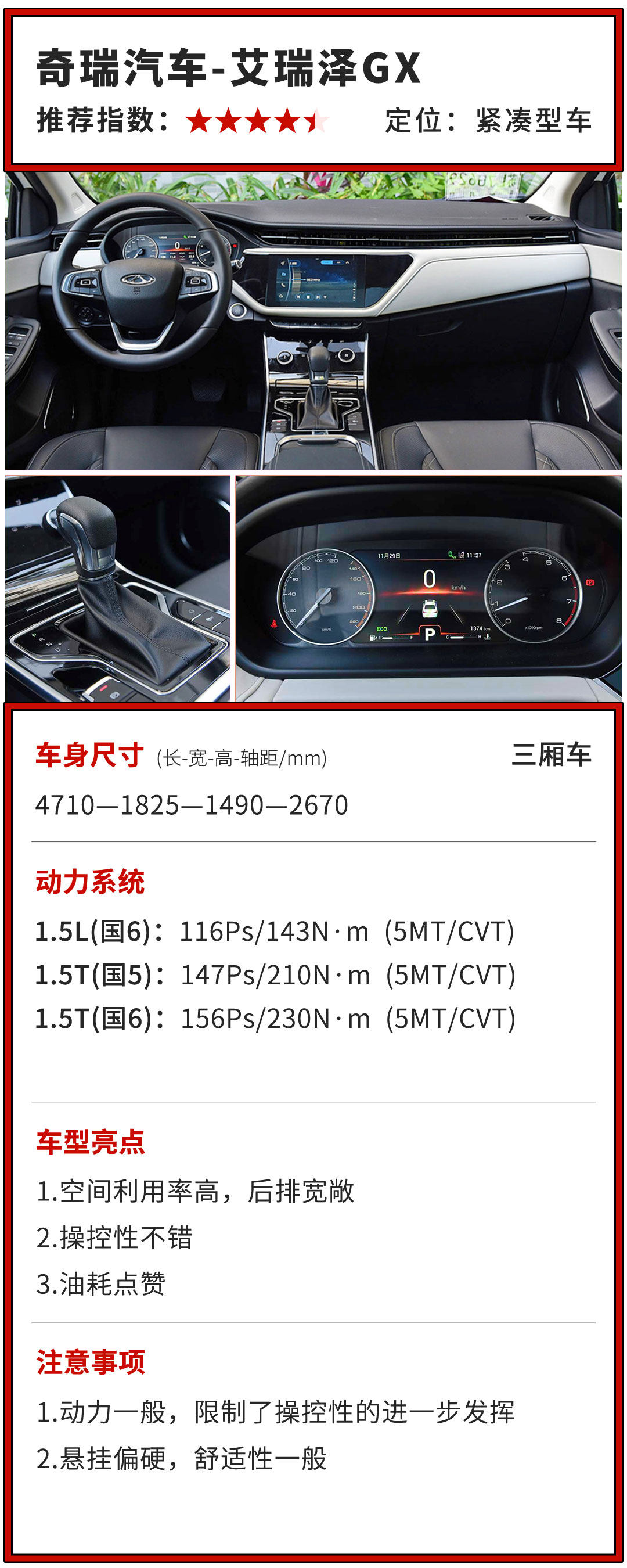 当然,缺点也是有的,那就是对于艾瑞泽GX如此优秀的操控感受来说,动力确实有些偏“弱”了,限制了操控性的进一步发挥,如果能推出一款搭载奇瑞最新197马力1.6T引擎的性能版就好了。另外,既然是运动化调校,那艾瑞泽GX的悬挂也不可避免偏硬,舒适性不算很好。