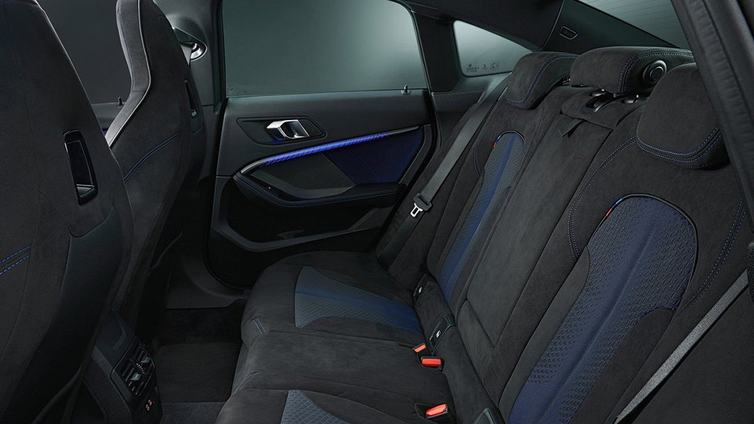2系Grand Coupe还采用了桶式运动座椅,包裹性更强,Alcantara在激烈驾驶中还能稳稳“抓住”你,让你不需要耗费过多体力在与座椅较劲,反而让你把更多注意力放在前方弯道。至于后排,买这车的人真会考虑后排乘客感受吗?跟这款4526*1800*1420mm车身尺寸、2670mm的紧凑型轿车说空间,还真为难它了。