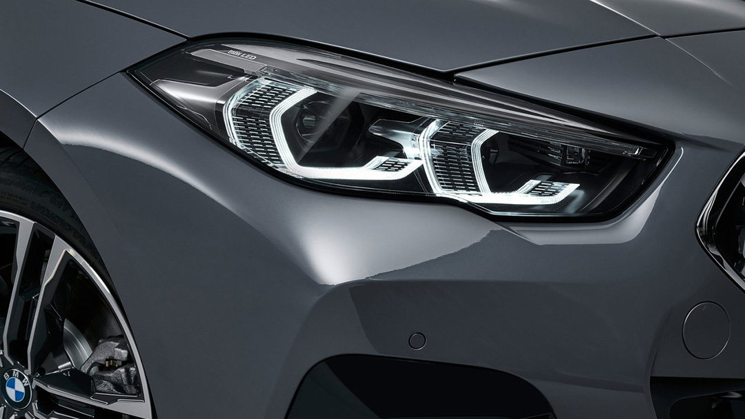所以说侧面就是这辆2系Grand Coupe的灵魂所在,而前脸也相当抢眼,比起自家兄弟1系有着更狭长的大灯,采用了LED光源作为自己的“灵眸”,进气格栅除了得典雅型的竖向格栅外还带有点阵式双肾型格栅,下部则是从概念车保留而来的凶猛设计。