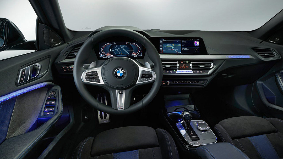 如果说外观是一种“明骚”,那么内饰就是“闷骚”了,它采用了1系上那种简约典雅风格内饰,整体上耐看但始终是中规中矩,让人挑不出缺点也让人称不上惊艳。但细细感受后,你还是能感受到它来自于材料做工上的惊艳,例如是车上各个身体触及部分均采用了软质材料(皮质、Alcantara),并且是以蓝色缝线作为点缀,另外还有水晶质感的电子挡把。