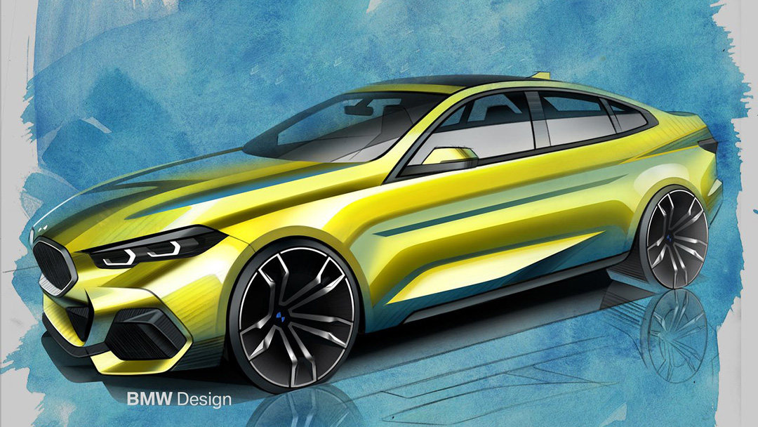 这两张设计概念图,就很好地为我们预示了宝马2系grand coupe的设计,狭长大灯加上夸张雾灯装饰,形成了凌厉凶猛的前脸;渐隐于C柱的平行腰线,为车身带来延伸感,显得更长;另外还保留了2系的固有特色设计,“溜背”、“翘尾”,保留了它的动感个性特质。