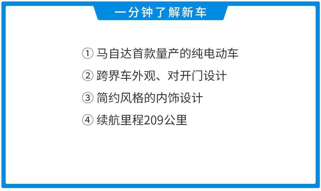 但马自达MX-30的续航能力令人担忧,它搭载35.5kwh的动力电池组,单电机最大功率为143马力(106千瓦),综合续航里程只有209公里,面对国内电动车动辄500公里+的续航里程,这显得不够看。