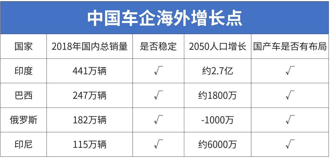 而且万事都讲究先机,通俗一点,在敌方埋下一颗钉子,进可攻退可守。慢慢积蓄力量,未必不能占领当地市场。像俄罗斯、印度、巴西等潜力巨大的国家,国产品牌在当地的布局还是很有效,接下来就是开发本土化车型,慢慢扩大影响力了。