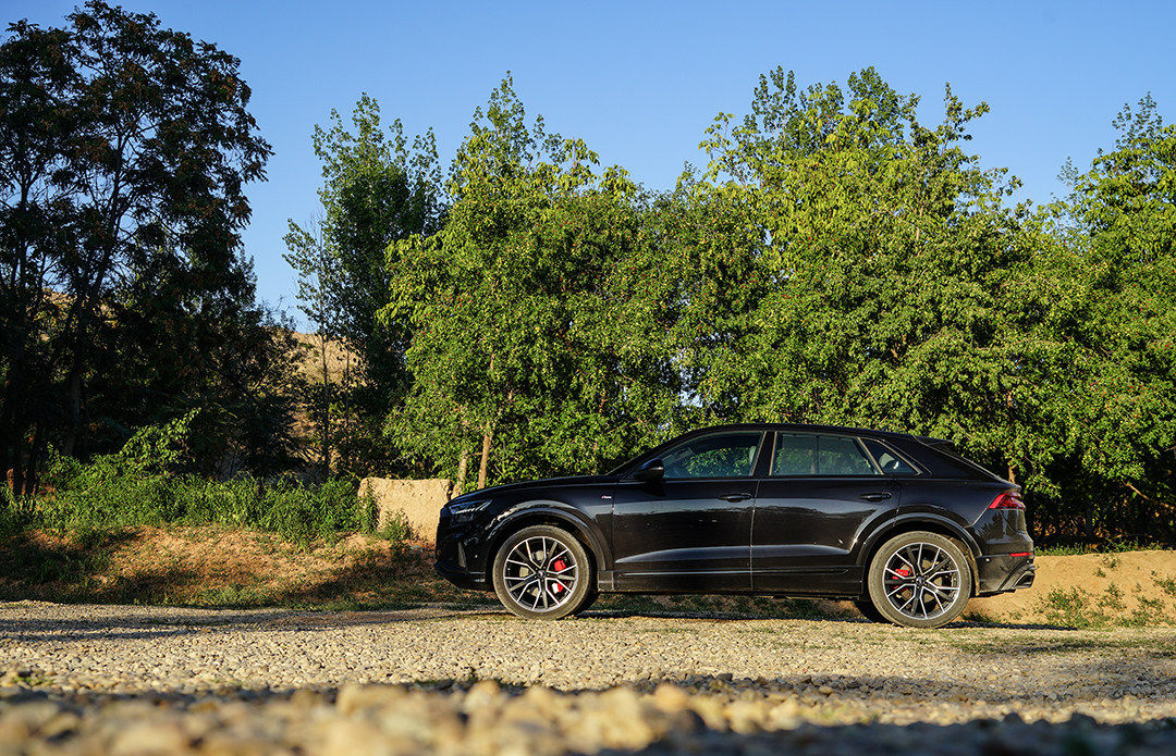 奥迪Q8全系标配Quattro四驱系统,并且带有纯机械式中央差速器,前后悬架均为可调节的多连杆式独立空气悬架,调节范围达到了90mm,越野能力不容小觑。另外,为了让这个“大块头”驾驶更灵动,它还具备了后轮转向系统,刹车则是多活塞卡钳。