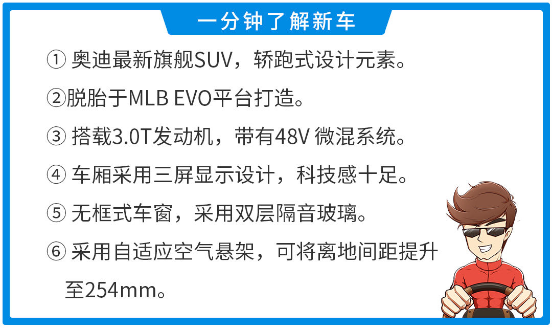 以往的旗舰车型,都是典雅的,有着一种霸气外露的领袖气场。但如今,在年轻化、个性化趋势的影响下,旗舰车型也可以是个性另类的,例如宝马8系、奔驰SLS,又或者是我们这次的主角——奥迪Q8,它作为奥迪的新旗舰SUV之一,最大亮点就在于轿跑式SUV设计。在日前,它正式在内蒙古的鄂尔多斯市公布售价为76.88—101.88万。这款SUV,又是怎样的旗舰呢?