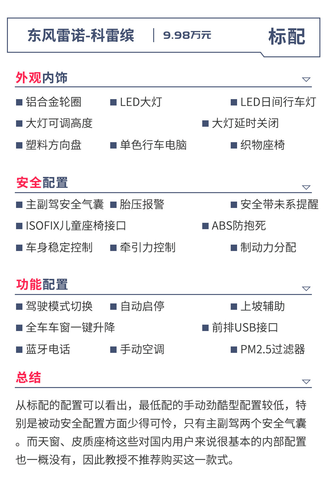 教授想,当今这个年代,应该没有谁回去买一台最低配的手动挡小型SUV了吧?就算是预算有限,那教授也推荐你去买一台售价和级别更低的自动挡车型算了,在大城市堵车,开一台手动挡的最低配车,真是没面子又活受罪哦~~