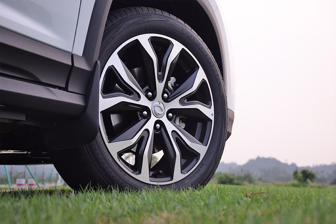 Y字形的五辐双色轮毂个性张扬,试驾车采用了优科豪马Geolandar G98系列轮胎,规格为215/55 R18 95V。
