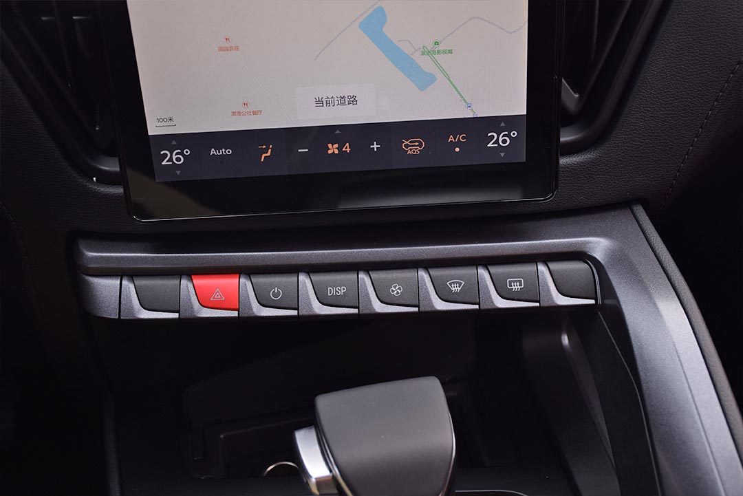 在中控屏的下方保留了一排物理按键,开车时可以实现部分功能的盲操作。但空调温度的调节仅能通过触控来实现,对于这种缺乏触感反馈的设计,我个人并不是很中意。