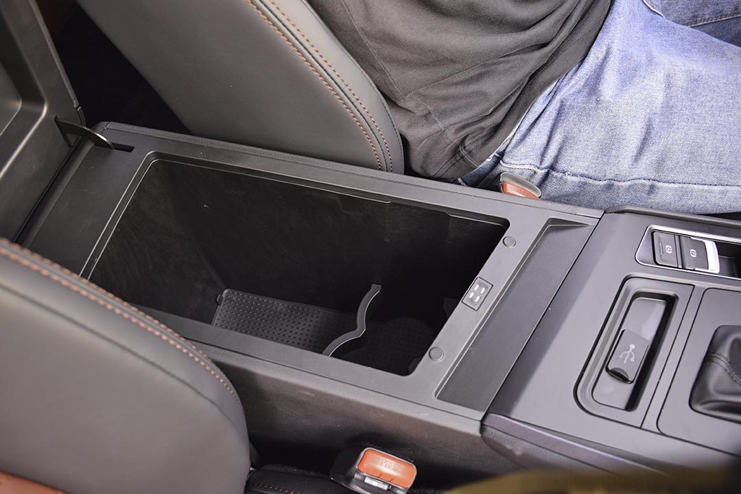 新车还匹配了19处的储物空间,基本能够满足日常的装载需求。不过从教授的体验来看,部分储物格的空间还可以做得再大一些,比如隐藏在中央扶手箱里的杯架,因为深度较浅,仅能放小瓶的水,再大就无法关闭扶手箱了。另外作为次顶配的车型,全车也只提供了一个USB接口,这让坐后排的乘客无法安心的玩手机了。