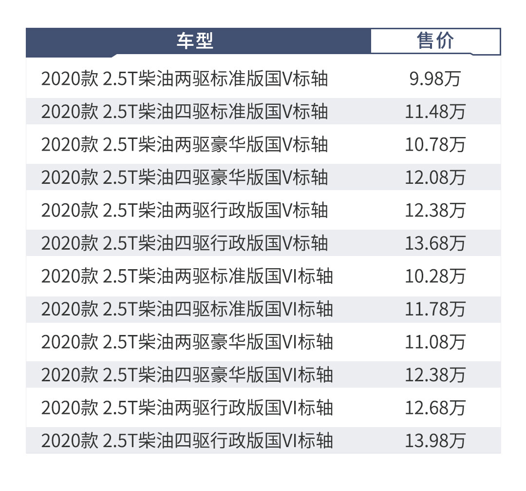 三种动力中,教授认为2.5T版本是最值得买的,其一是有国VI,其二是2.5的基础排量大,底气足,五十铃引擎的可靠性也更强,另其三是柴油机相比汽油机低转速扭矩更强,搭配手动挡在越野时不容易熄火,并且柴油机热效率更高,比同排量汽油机省油三分之一,省油的好处除了能省油钱,还能提升续航里程,在边远地区就不会因为续航短需要频繁加油,从而使用车不便甚至闹油慌。