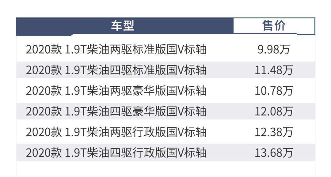 在提供的三款动力总成中,1.9T柴油机来自昆明云内动力,2.5T柴油机来自江西五十铃,2.4T汽油机来自沈阳航天三菱。据教授经验估计,后两款引擎将是主力销售款式,毕竟这两款引擎不仅有国VI排放版本,可销售地区更广泛,而且五十铃和三菱引擎的可靠耐用性有口皆碑,养护费用相当低廉。