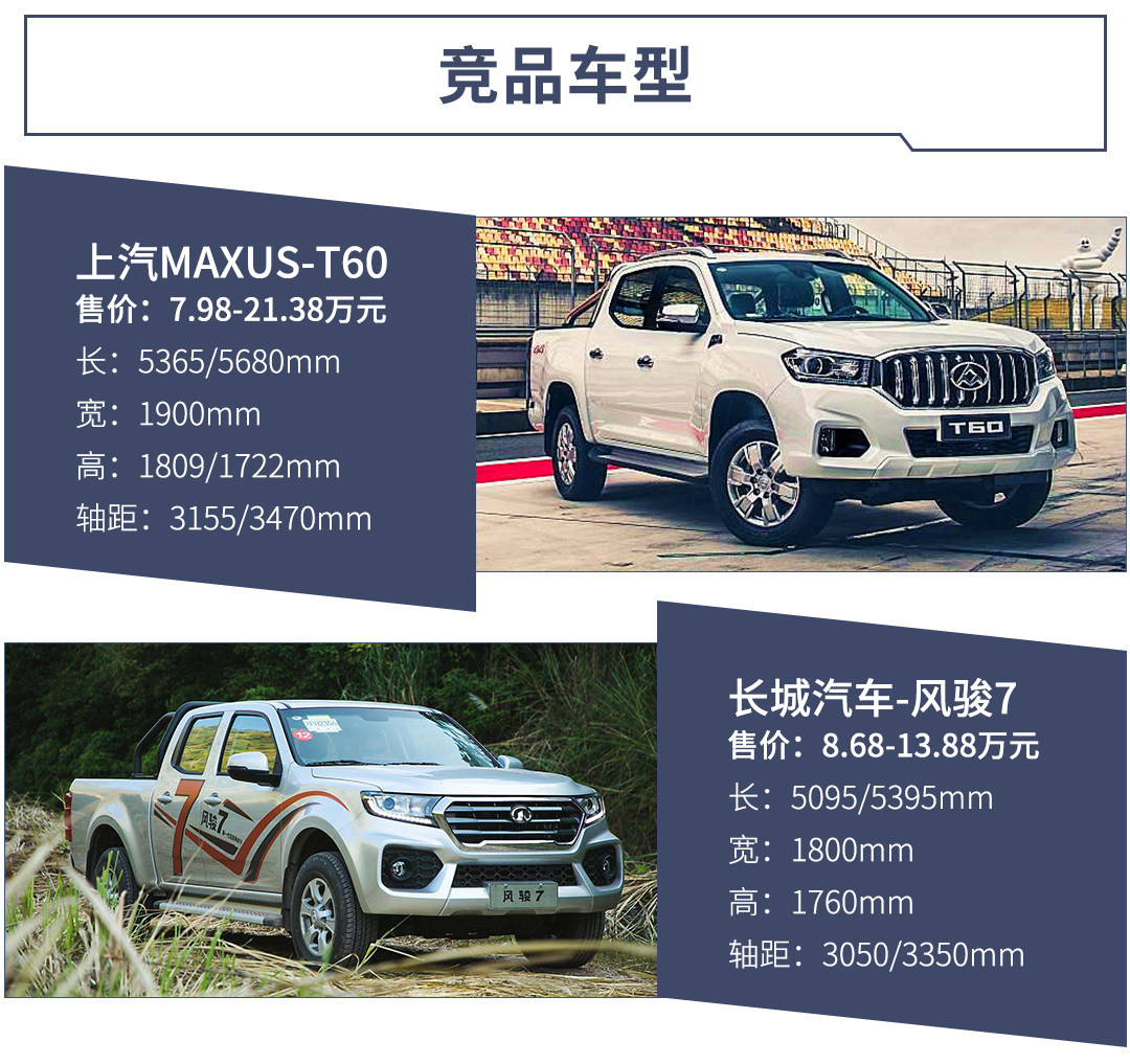 凯程F70的主要竞品,包括同样兼具一定越野玩乐性质的上汽MAXUS T60和长城风骏7。与这二者相比,凯程F70无疑相对弱势,主要是因为两位对手都提供了标准货斗和长货斗的版本,而动力总成组合搭配同样丰富,给用户选择的余地更多,更别说T60还有自动挡版本了。此外,长安轻型车作为皮卡市场的后来者,在品牌推广方面还需要加强,产品口碑还有待时间检验,可以这么说,皮卡是否可靠耐用,比其它任何指标都重要。