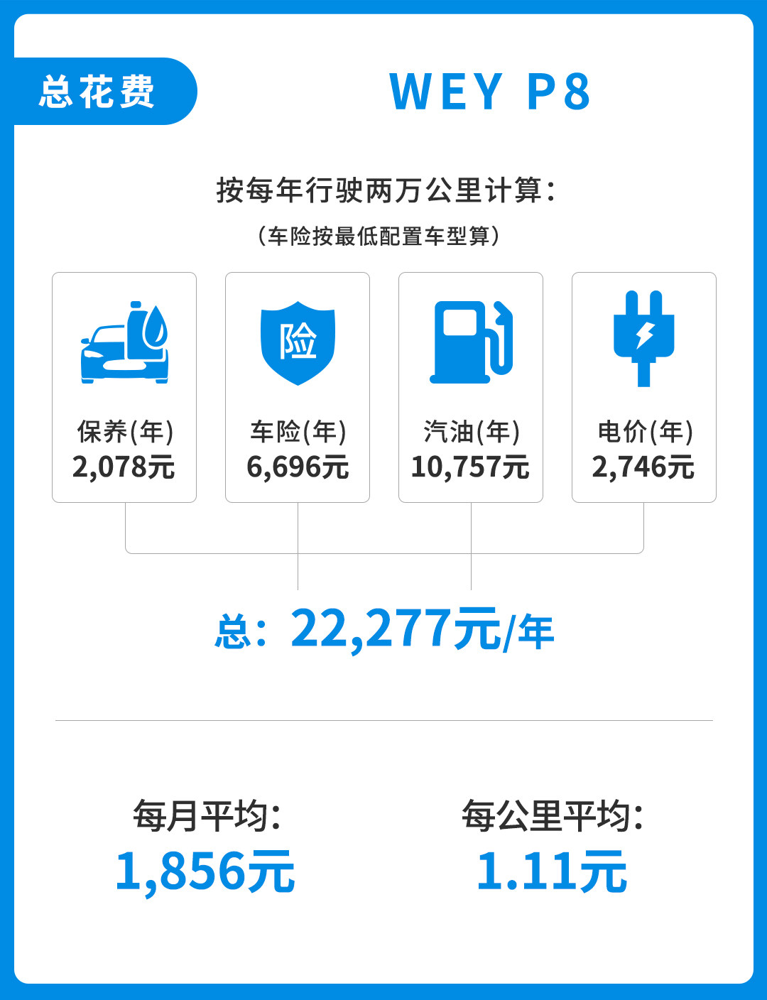 现在普遍消费者仍不敢选择纯电或插电式混动车型的其中一个很大的原因是不清楚其用车费用,尤其认为电池组万一坏了,更换不仅要自己掏钱,价格甚至要好几十万元。那么教授本篇文章就把WEY P8拉出来为大家分析一下,看看它的用车费用如何以及是否值得购买。