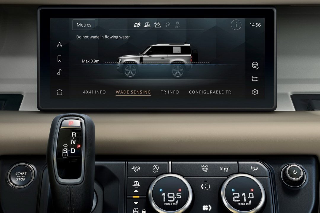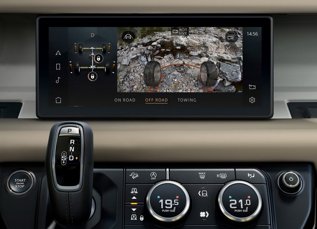 卫士还配备了第二代智能全地形适应反馈系统,可以提供9种模式,包括8种地形模式+1种涉水模式。如果你对越野不太了解,直接挂入自动模式,电子系统会根据路面情况自动调节四驱系统和动力输出。