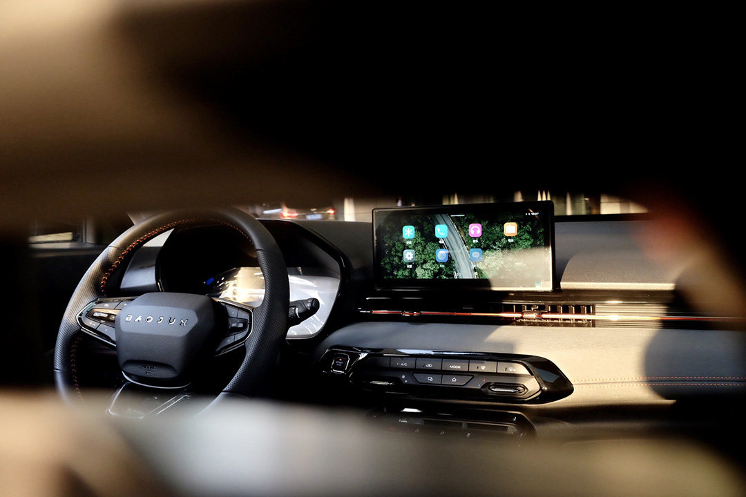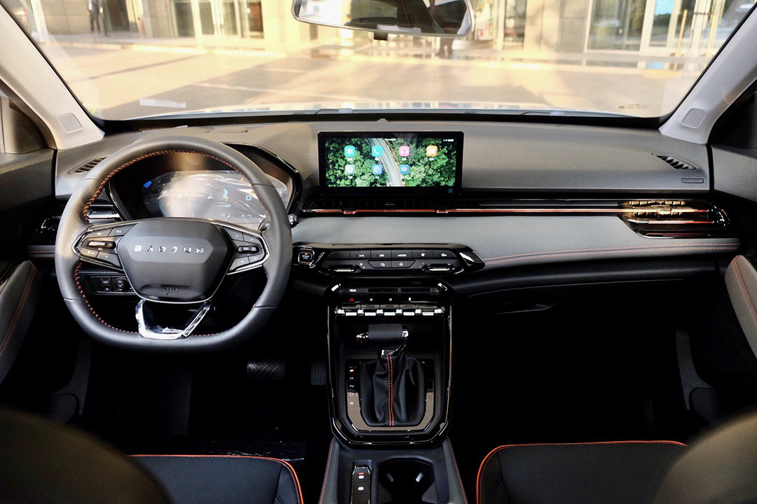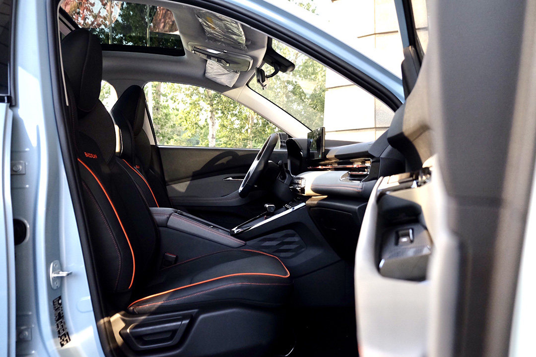 内饰方面,也有不少的经验汲取,例如显示细腻的全液晶仪表盘、悬浮式中控屏幕,或者是大小恰到好处的平底式方向盘,又甚至是撞色缝线点缀以及中控台上的独特花纹。若是对设计了解更深的话,你还会发现其在学习德系的简约感设计,中控台主要区域尽可能地减少按键,采用了横向贯穿式的空调出风口。但比较可惜的是,采用了高亮黑材质使得它在效果上是“前功尽弃”。总的来说,属于可圈可点之作。