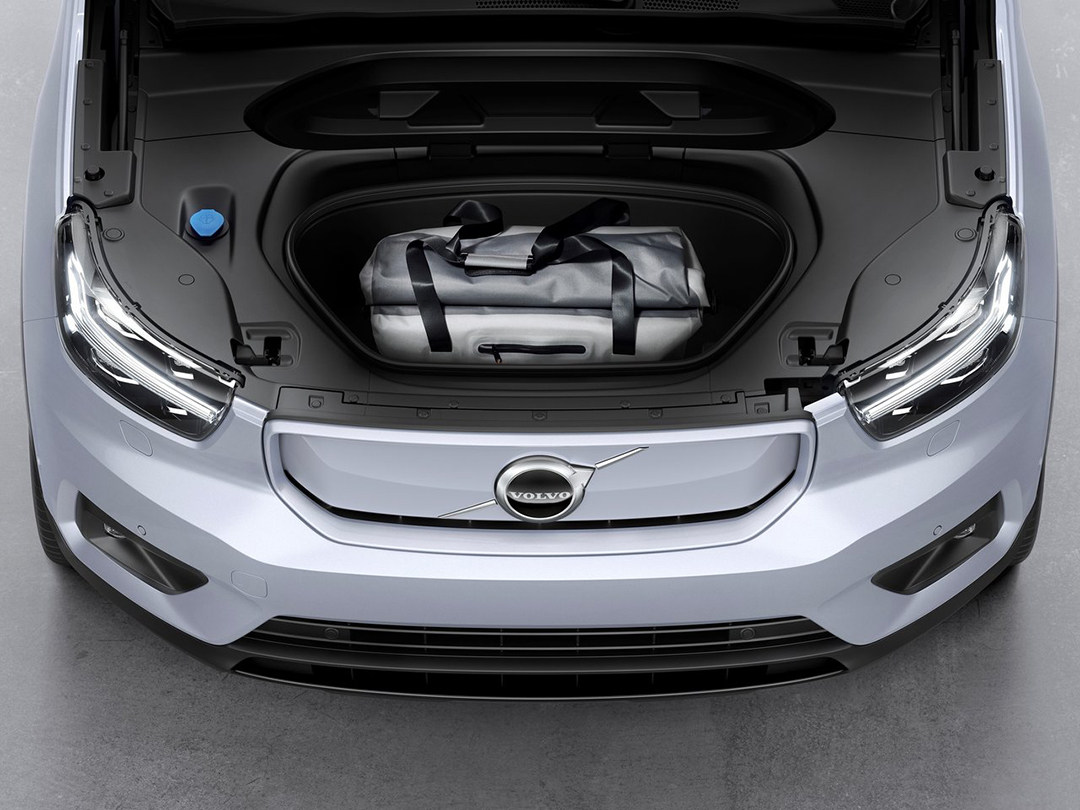 发动机舱被电机等部件取代后,XC40纯电版在前舱位置最大限度的进行优化,预留了储物空间,做到空间的利用最大化;这样的做法目前除了特斯拉外,是市面量产的电动车中少有的设计。