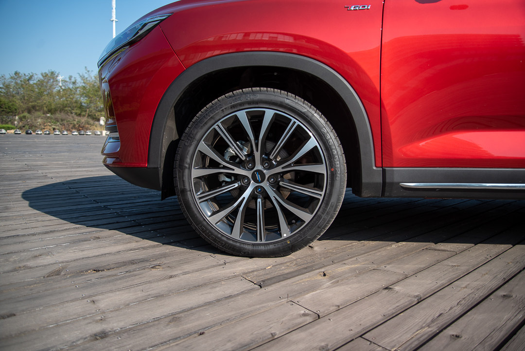 因为这次试驾的是顶配车型,所以配置上自然是把配置表的框框都点满。而顶配车型所采用的轮胎尺寸为235/45 R20,品牌和型号为玲珑的御风系列,电商平台报价530元/条。除了顶配车型外,其余配置将会使用17英寸或19英寸的轮胎。