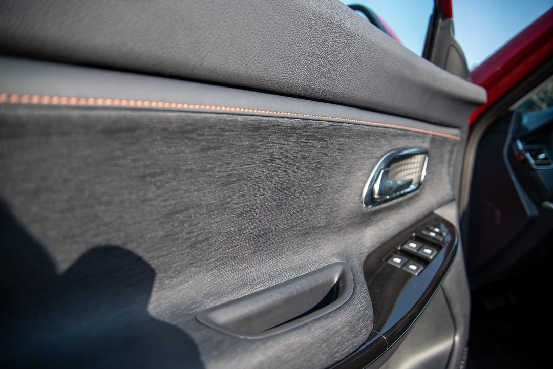 中控台与门板覆盖了大面积的软性材质,再搭配黑色拉丝织物面料,使得触感非常好。