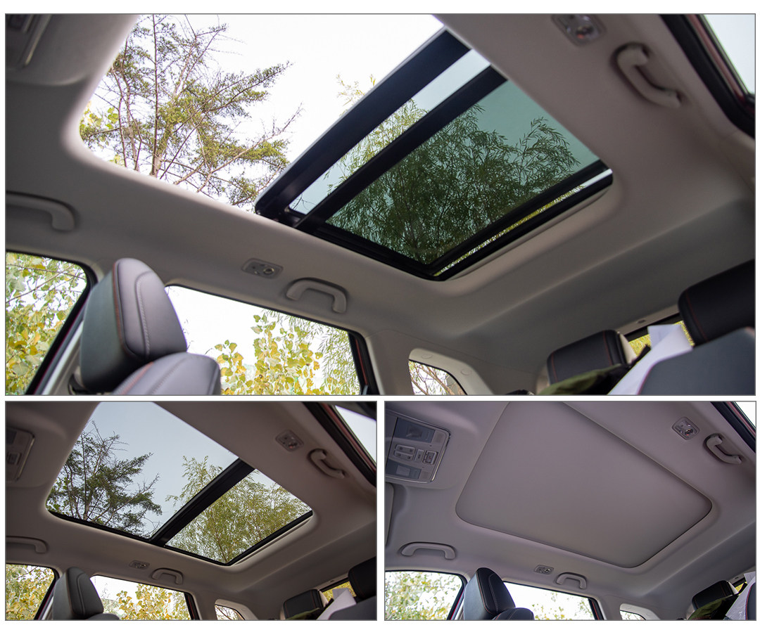 顶配与次顶配车型配备可开启的全景天窗,中配车型则是不可开启的全景天幕。