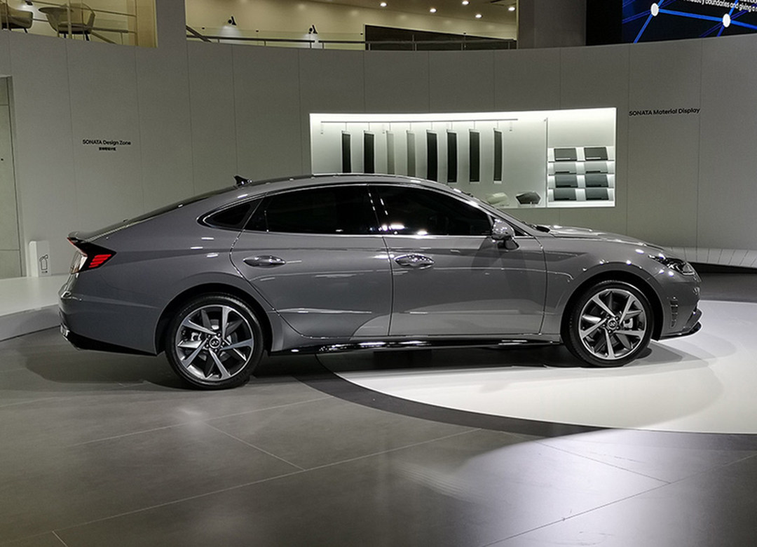 从车身侧面来看,十代索纳塔可以说是把溜背轿跑风格发挥到极致,甚至给人一种这是一辆掀背车型的错觉。整个车顶的线条通过弧度直接延伸到了车尾,搭配灰色车身,运动感满满。遗憾的是,没有搭配无边框车门,这样的造型如果能搭配无边框车门就完美了,颜值与逼格瞬间提升一个档次。