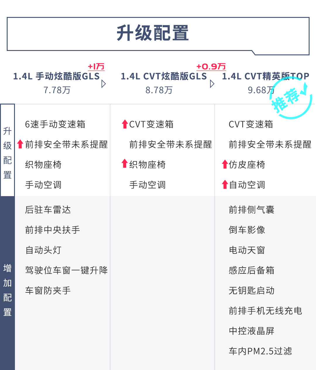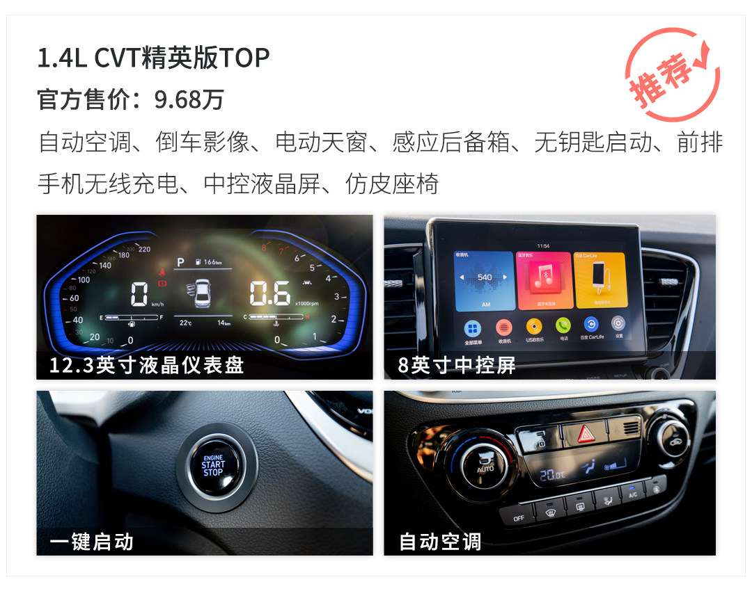 虽说车型提供了4款选择,但手动炫酷版和CVT炫酷版的配置水准维持了一致,只是换装了CVT变速箱,而真正有着更高功能性和便利性的车型还是CVT精英版,甚至连前排手机无线充电都有配置在内让人有些惊喜。