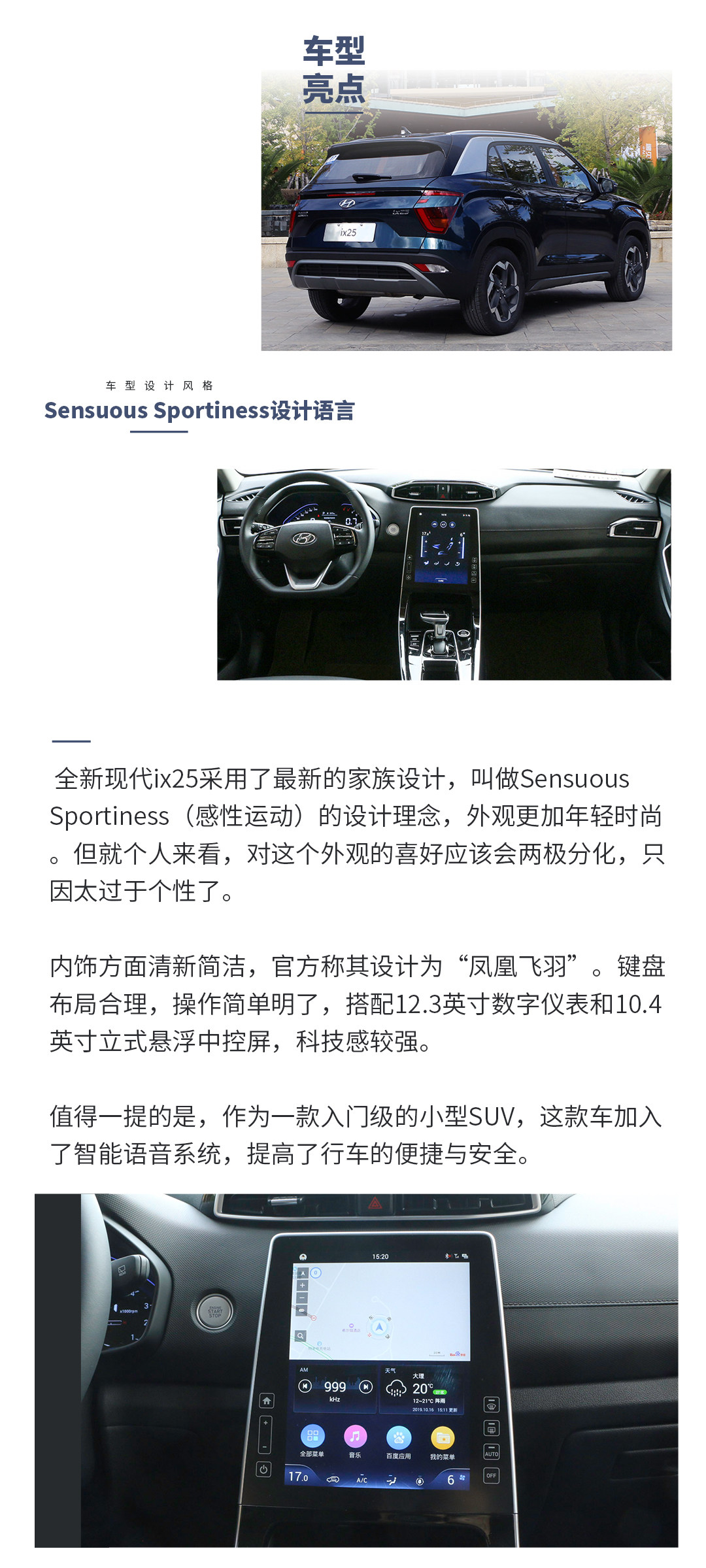 颜色方面,因为有双色车身可选,所以还有两种不同的拼色选择,使得现代ix25更加年轻有活力。