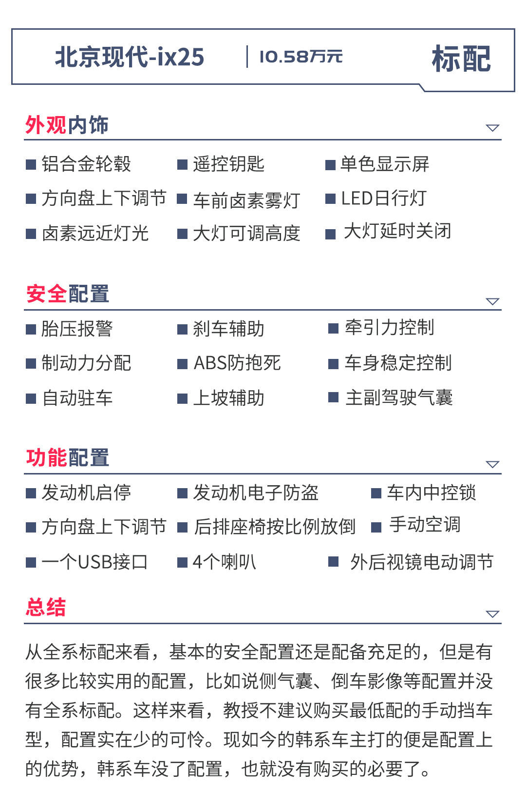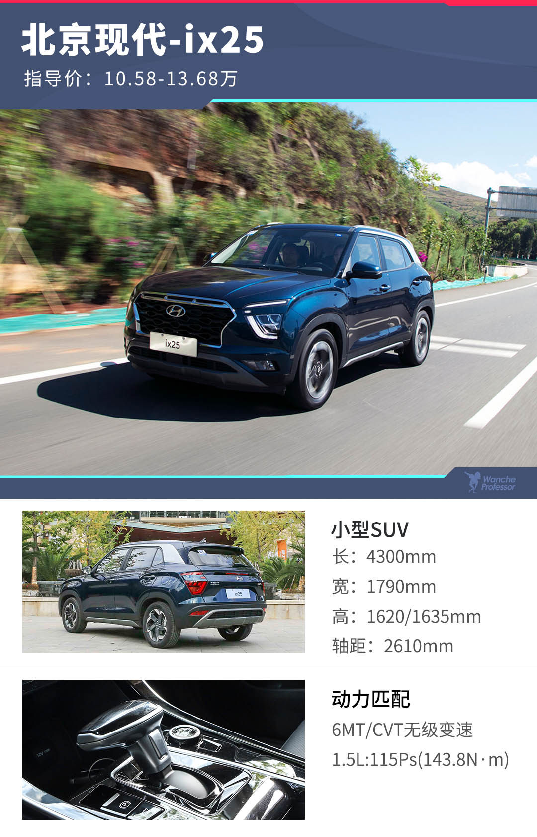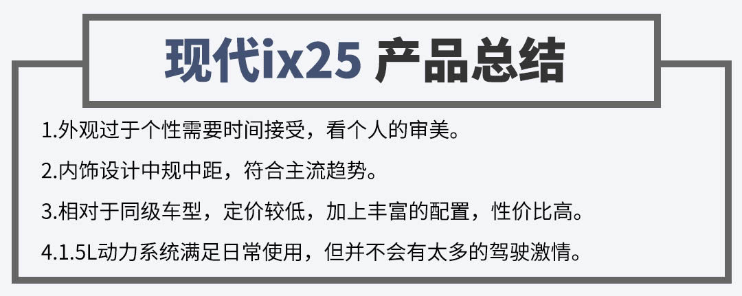现代ix25一共有四款车型,教授并不建议客官老爷们选择手动挡车型,所以最终建议在智能型和尊贵型中选择一款便已足够了。
