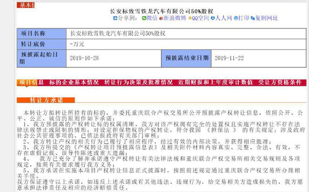 近日,长安汽车正式挂牌出售长安标致雪铁龙汽车有限公司50%股权。据长安汽车相关负责人解释称,此次转让是长安汽车为了“转型升级,聚焦自主”而做的选择。另外,长安汽车于10月31日发布了第三季度财报,财报显示长安汽车前三季度财报营收同比下降9.5%,亏损高达26.6亿元。显然,长安汽车的日子并不好过,精简规模,聚焦高效益项目是当下迫不得已的选择。