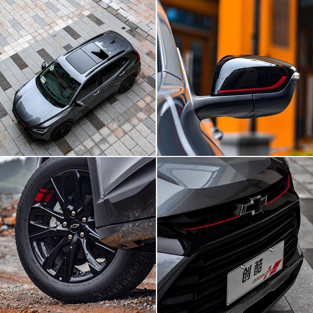 雪佛兰创酷在外观上的接受度就比ix25强多,它没有运用复杂的线条,但格栅、后视镜、轮圈那一抹红色增强了它的视觉效果,而且车标、轮圈的熏黑处理也让它与众不同。创酷的魅力在于从外观上就有一种“这车很精致”的感觉。