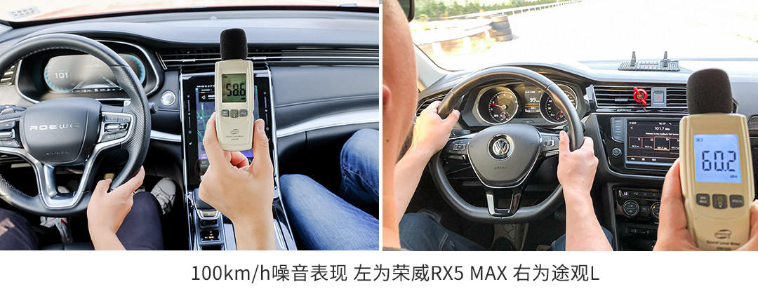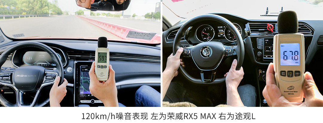 有了强大的实验室和专业人才的支撑,让荣威RX5 MAX在理论上拥有了强大的NVH性能。那么具体的效果如何呢?那当然要测试过才能知道。测试车分别为荣威RX5 MAX和大众途观L。